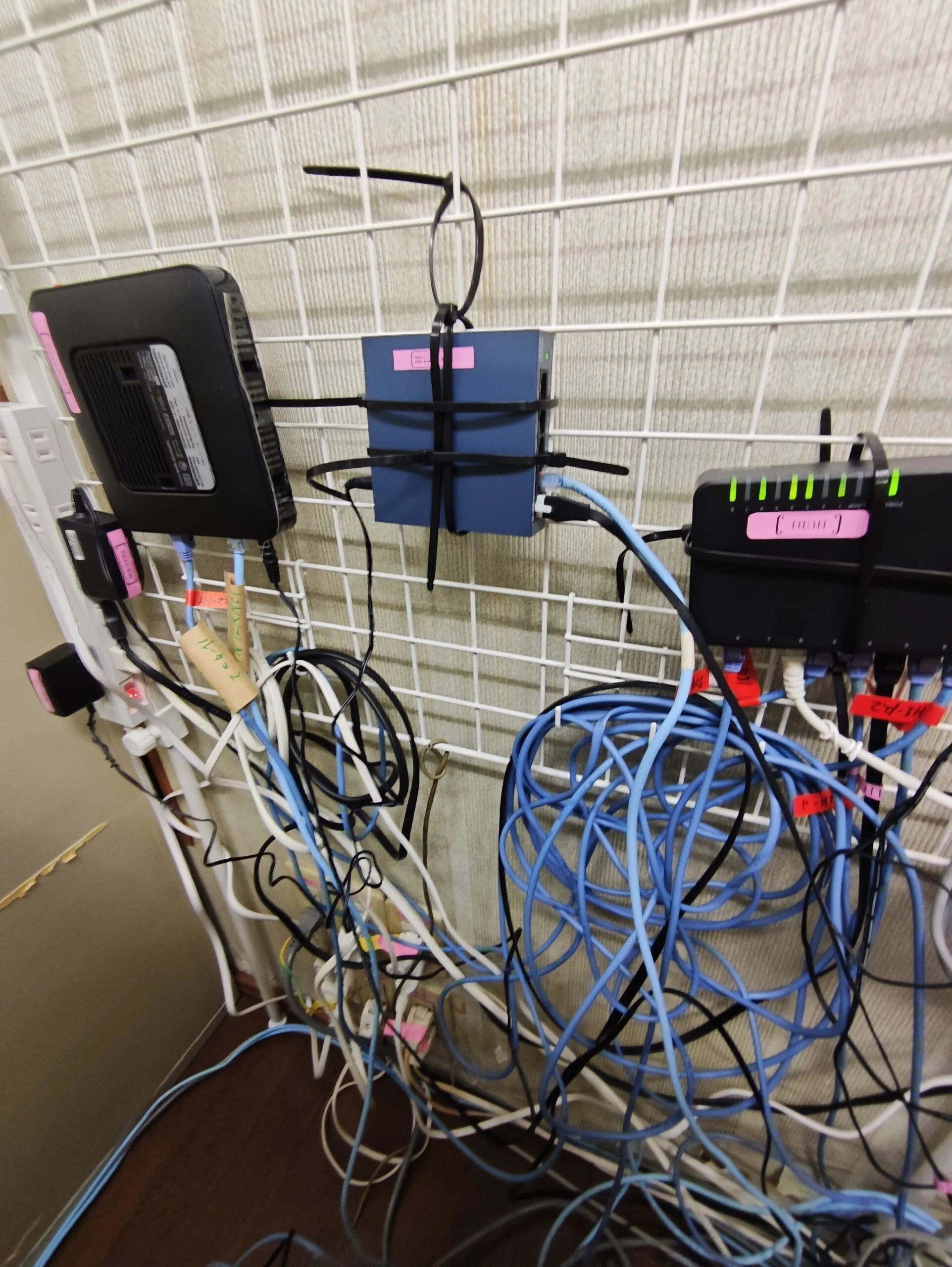 • 電源系/LAN系が混在し、どの線がどの機器か追いにくい状態。